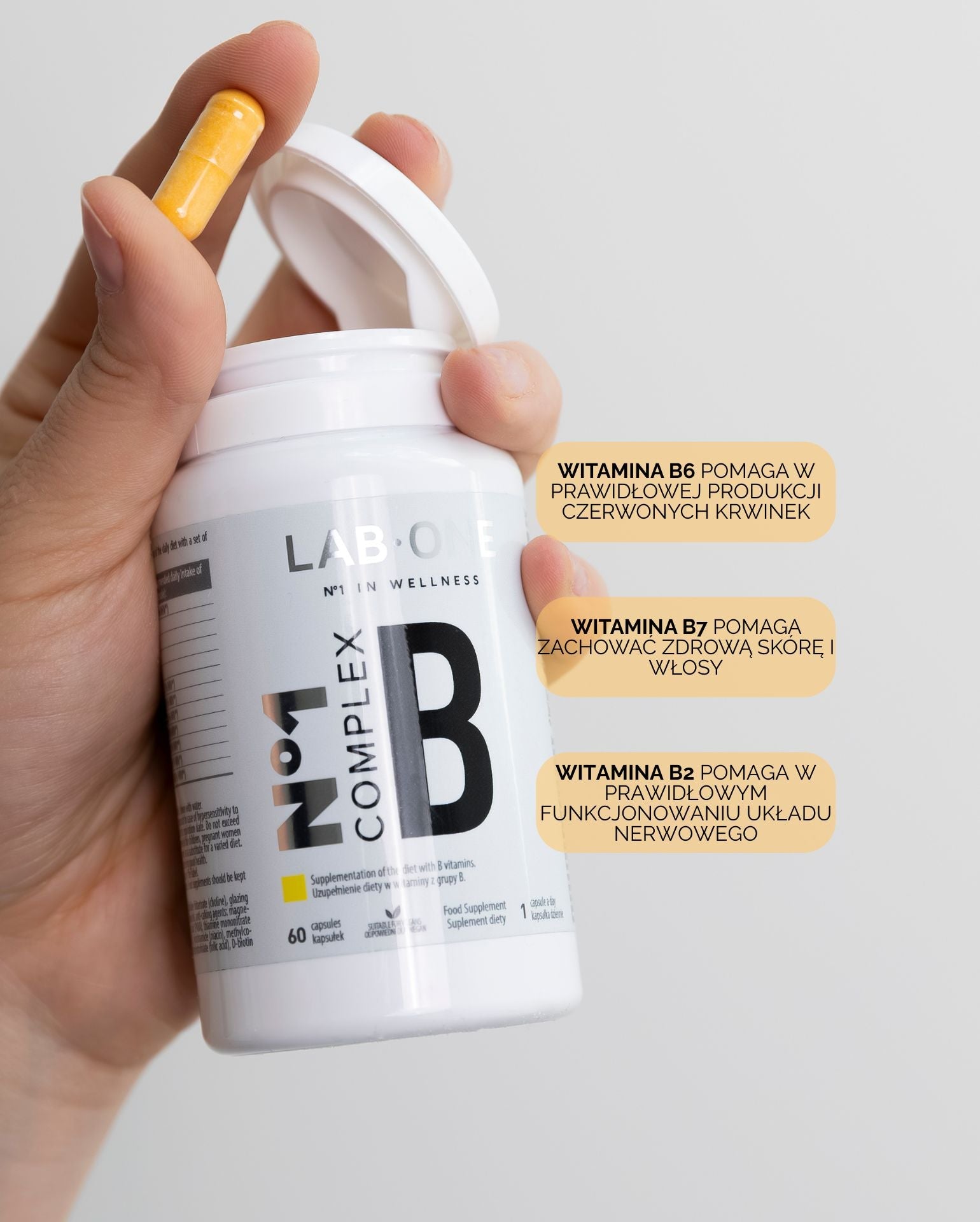 LAB ONE COMPLEX B Kompleks witamin B1 B2 B3 B5 B6 B7 B9 B12 Tiamina Niacyna