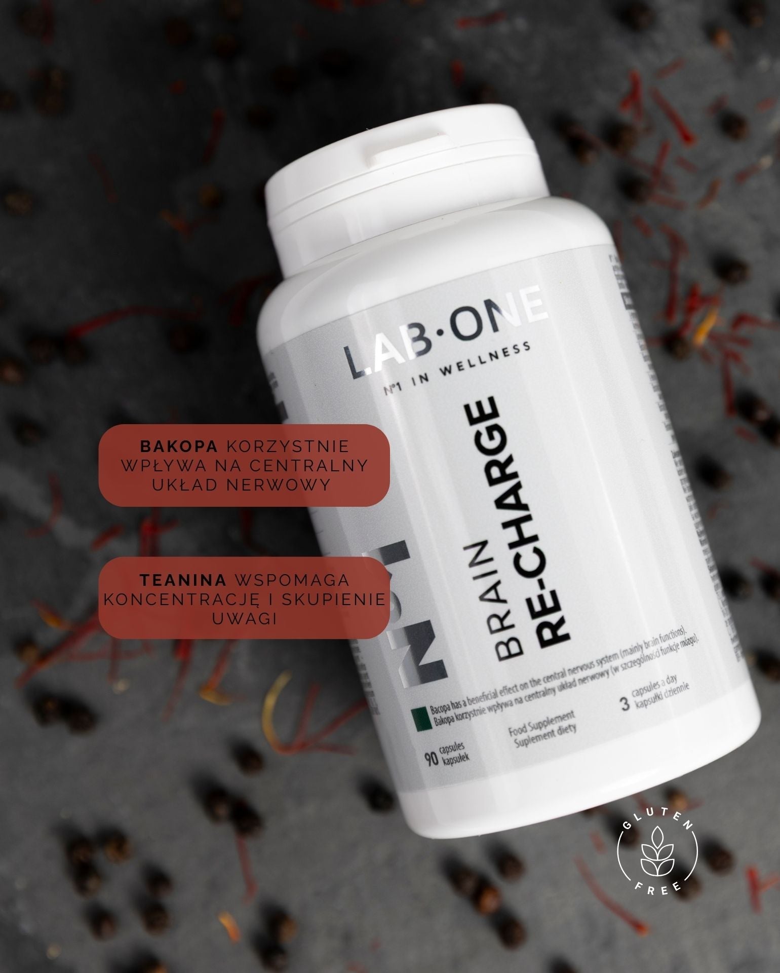 LAB ONE BRAIN RECHARGE tabletki na koncentrację i pamięć 90 szt Uspokaja