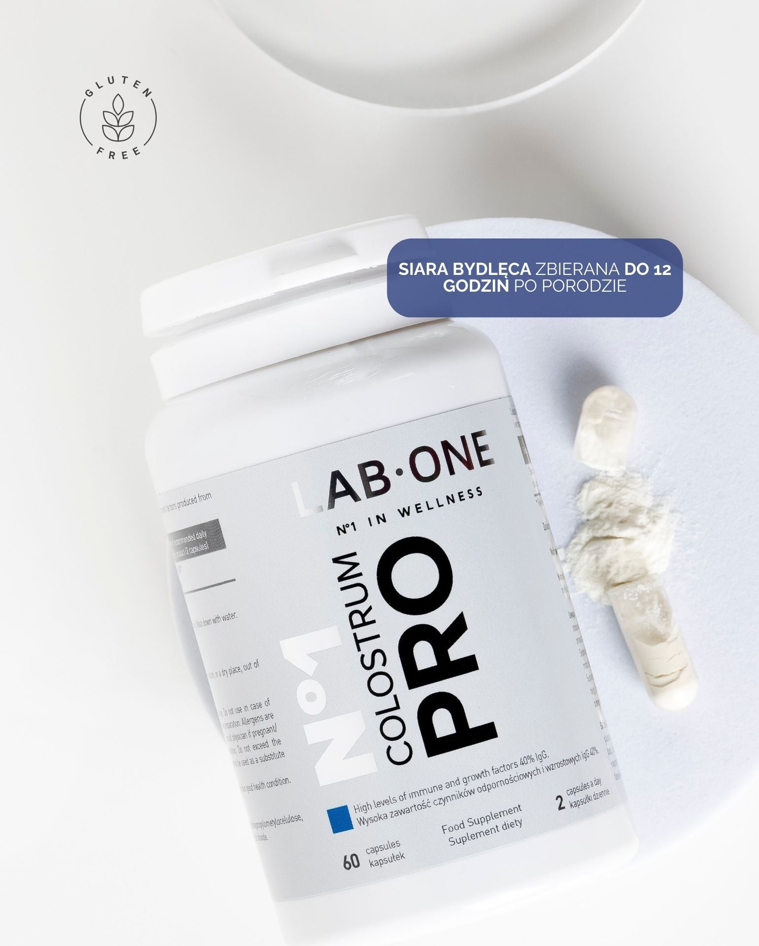 LAB ONE Colostrum PRO Kolostrum Siara bydlęca Odporność 800mg 60 szt