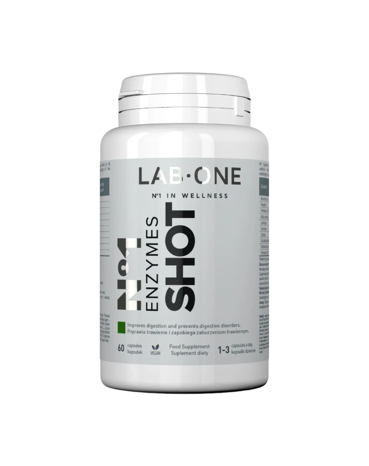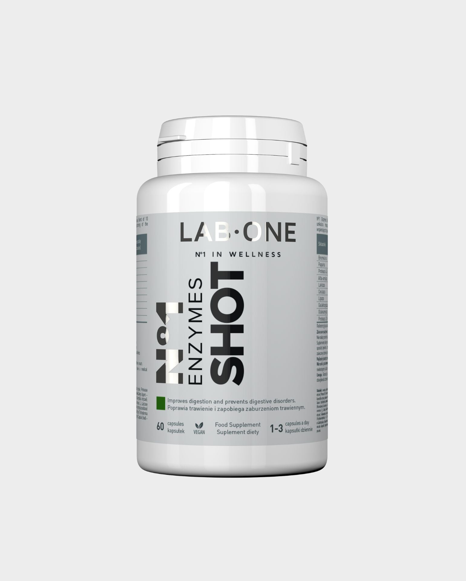 LAB ONE ENZYMES SHOT Enzymy trawienne 60 kaps Metabolizm Bromelaina Papaina